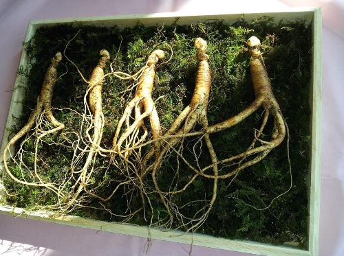 인삼이 많은 인삼밭에서 인삼을